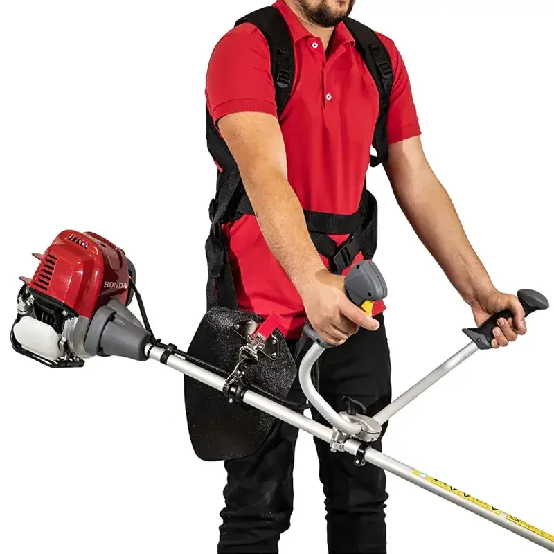 Также бензиновый триммер Хонда UMK 450UEET обладает очень богатой стандартной комплектацией, в которую входят защитные очки, триммерная головка для кошения, металлический нож для жесткой травы, а также очень удобная ременная система с двумя широкими лямками на плечах.