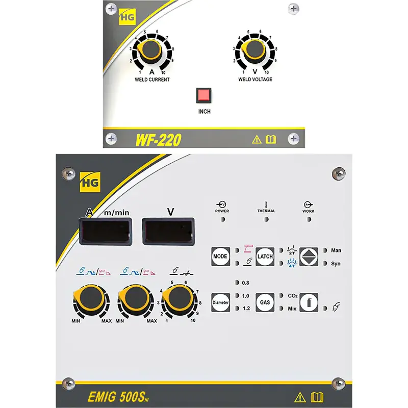 Синергетический режим обеспечивает максимальную простоту в работе и позволяет быстро подготовить сварочный аппарат Hugong EMIG 500S III к использованию. Достаточно задать желаемую скорость подачи проволоки, и значение напряжения будет выставлено системой автоматически.