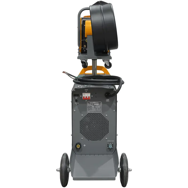 Сварочный полуавтомат Hugong EMIG 500WE III предназначен для работы в режимах MIG/MAG, ММА. Питается от 3-фазной сети с напряжением 380 В. Аппарат выполнен на базе инверторных транзисторов IGBT. Поставляется в комплекте с механизмом подачи проволоки, рукавом и роликами.