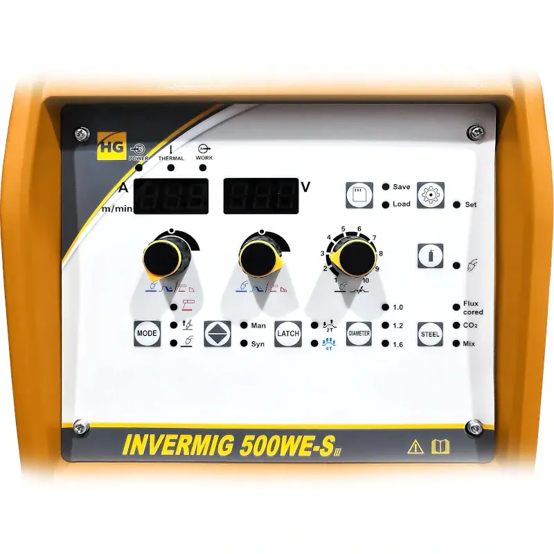 Благодаря синергетическому управлению вы быстро подготовите сварочный аппарат Hugong EMIG 500WE III к работе и зададите настройки для каждой конкретной задачи. Достаточно установить желаемую скорость движения проволоки. Напряжение регулируется системой автоматически.