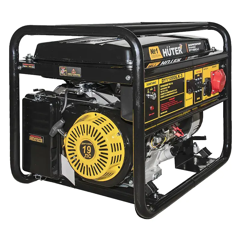 Бензиновый генератор HUTER DY11000LX-3 с номинальной мощностью 8,5 кВт обеспечивает питанием потребителей однофазного и трехфазного тока при отключении энергии или там, где отсутствует центральное электроснабжение. Портативная электростанция четырехтактным бензиновым двигателем мощностью 19 л.с. пригодится в частном доме, на производстве или строительной площадке.