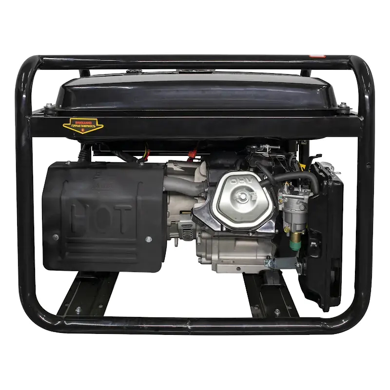 Портативная электростанция оснащена четырехтактным бензиновым двигателем мощностью 19 л.с. с системой легкого запуска. Если к клеммам стартера подключить аккумуляторную батарею, можно пользоваться электростартером, благодаря которому мотор заводится поворотом ключа в замке зажигания. Расход топлива составляет 375 г/кВтч.