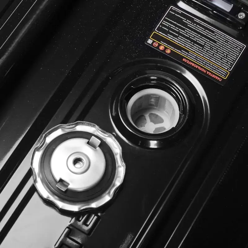 Вместительный бензобак рассчитан на 25 л топлива, что достаточно для продолжительного выполнения работы без частых остановок на дозаправку.Уровень моторного масла можно контролировать при помощи специального индикатора на панели. При этом в случае недостаточного количества жидкости встроенный датчик остановит работу двигателя для предотвращения поломки.