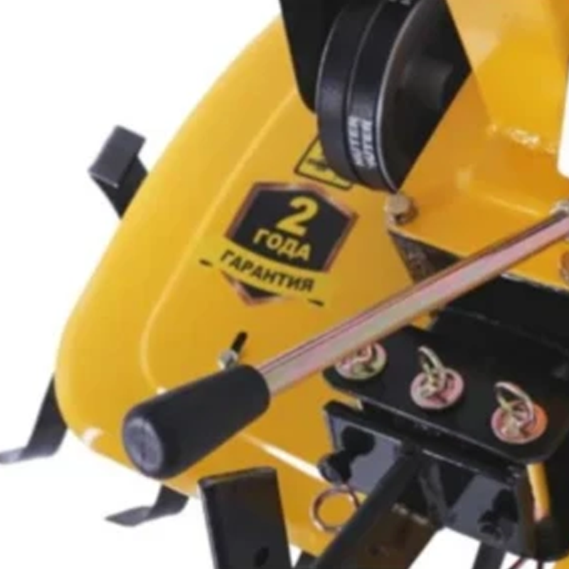 Модель оснащена регулируемым сошником, позволяющим контролировать глубину обработки. Фрезы имеют диаметр 30 см и изготовлены из закалённого металла, что увеличивает их стойкость к износу и повреждениям, делая возможным эффективное разрушение уплотнённых пластов и обработку сложных типов грунтов.