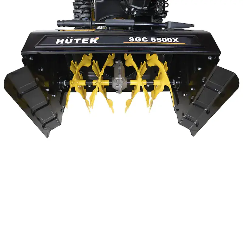 Снегоуборщик HUTER SGC 5500Х имеет прочный металлический ковш и зубчатый шнек, что позволяет ему убирать даже плотные, слежавшиеся снеговые массы. Большие колеса с агрессивным протектором обеспечивают высокую проходимость машины на заснеженных и обледенелых участках.