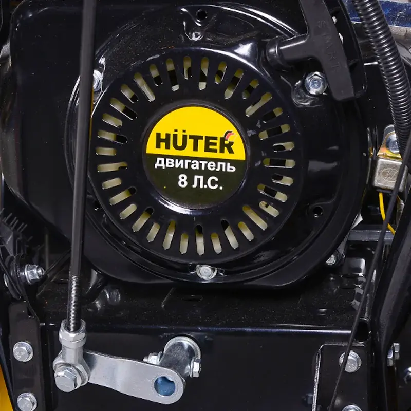 Колеса тракторного типа имеют глубокий рисунок на шинах. Это обеспечивает хорошее сцепление снегоуборочной машины Huter SGC 8,0 с поверхностью, что делает агрегат устойчивым даже при гололеде.