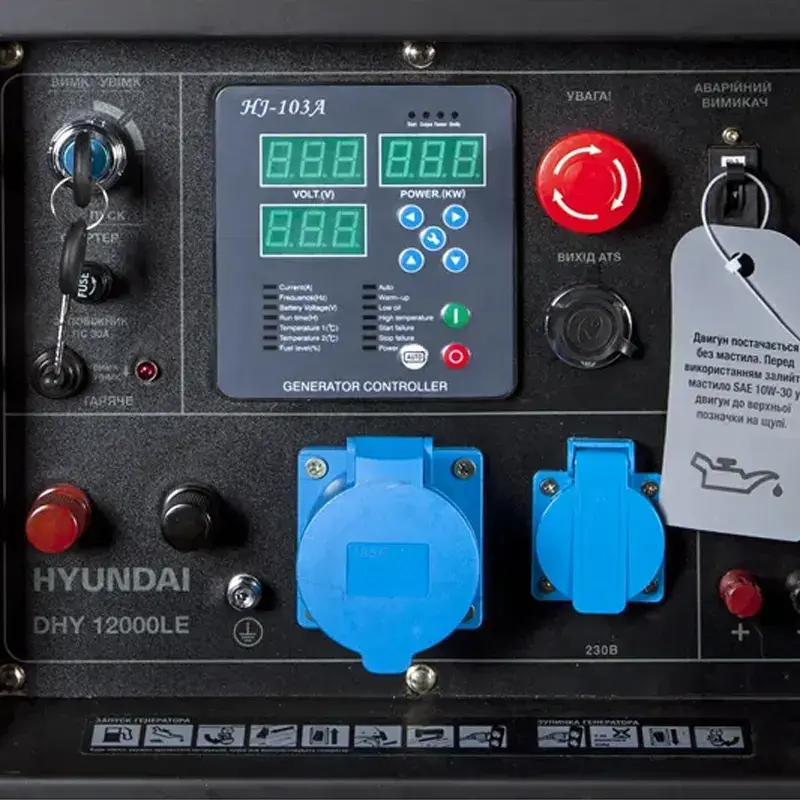Возможность подключения блока ATS в дизельгенераторе Hyundai DHY 12000LE позволит работать в полевых и экстремальных условиях, если прекратилось общее снабжение, и вы находитесь за городом. Устройство автоматически активируется и запустит генератор в аварийном режиме, и обратно подключит внешнюю сеть по восстановлению.