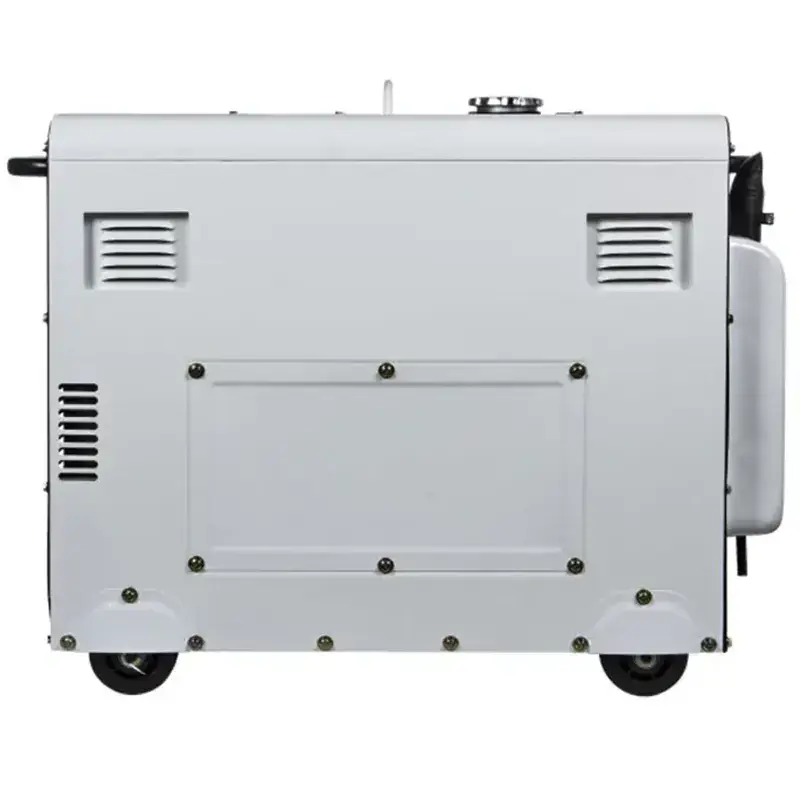 Эта модель электростанции предназначена для стационарного применения, но при этом, на ней установлены небольшие колеса и удобные рукоятки, которые облегчают ее перемещение. Двигатель с системой улучшенного запуска быстро заводится даже при низких температурах. Вам достаточно несколько раз нажать кнопку на панели управления, которая запускает подогрев воздуха при формировании топливной смеси.