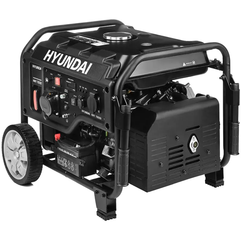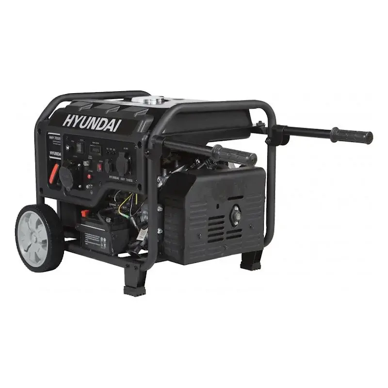 Инверторный генератор Hyundai HHY 7050Si номинальной мощностью 5 кВт вырабатывает качественный ток со стабильной синусоидой, что позволяет использовать его в качестве резервной электростанции для загородного дома, питания котлов отопления и высокоточных приборов. Устройство оснащено четырехтактным бензиновым двигателем мощностью 9,5 л.с., вместительным топливным баком и колесами для перевозки. Температура эксплуатации: от -5°С до +35°С.