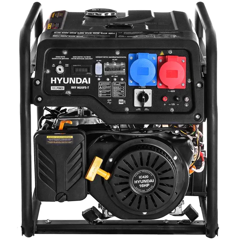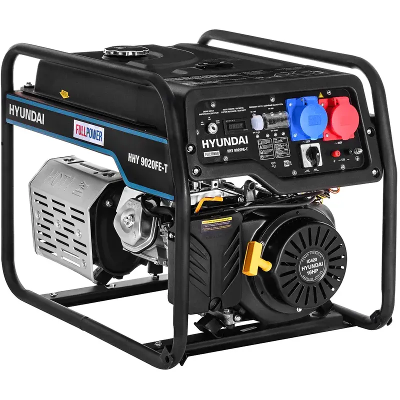 Бензиновый генератор Hyundai HHY 9020FE-T с максимальной мощностью 6,5 кВт оснащен двумя розетками для подключения однофазного и трехфазного оборудования. Каждый выход оснащен собственной защитой от перегрузок.