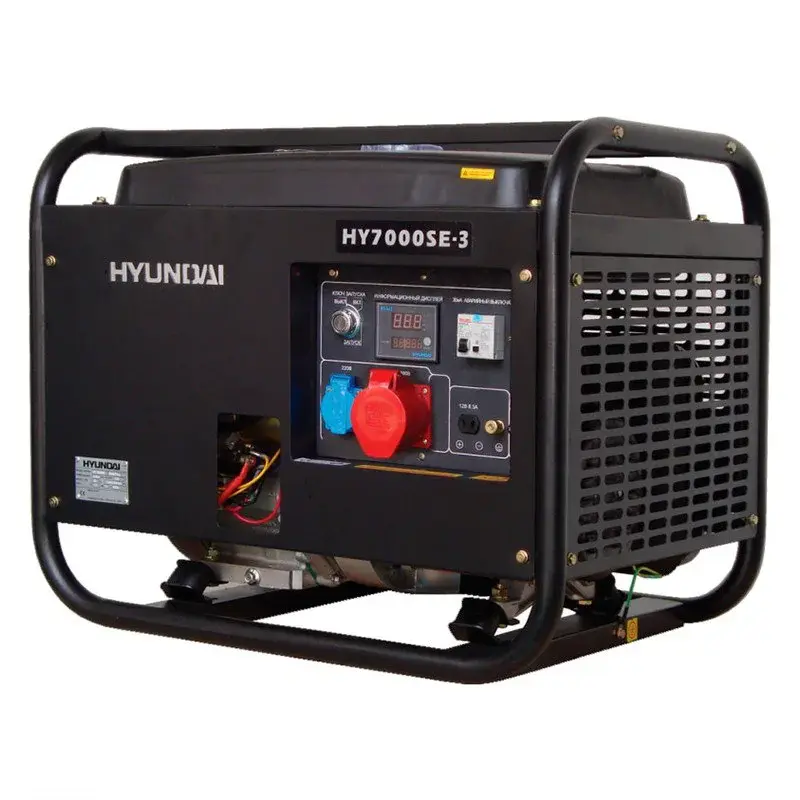 Бензиновый генератор Hyundai HY 7000SE-3 – резервный источник электроэнергии для интенсивной эксплуатации на объектах разного рода: от строительных площадок до производств. К аппарату можно подключать потребители суммарной мощностью до 5 кВт.