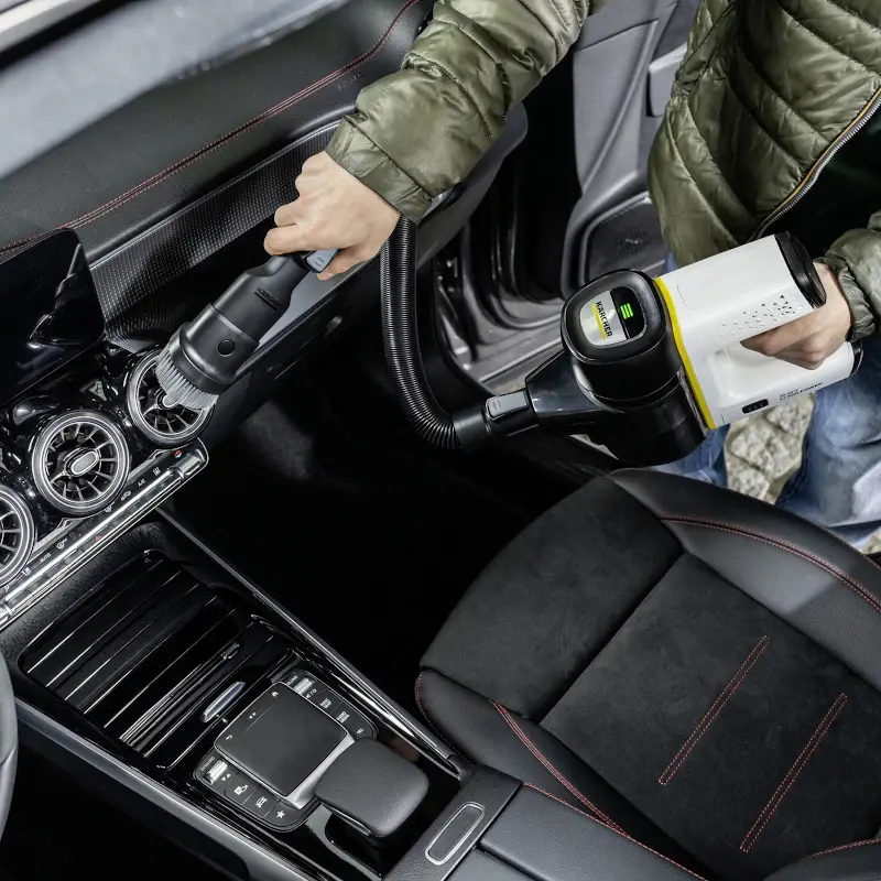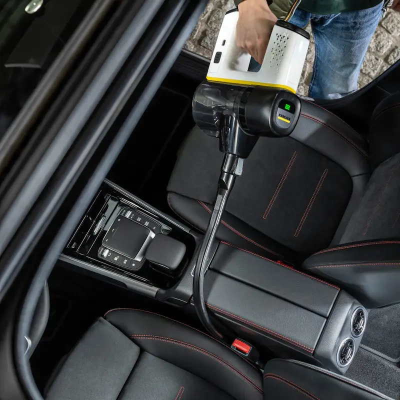 Компактность конструкции, малый вес и обширная комплектация позволяют использовать аппарат для решения самых разнообразных задач, в т. ч. и в качестве ручного пылесоса. Щелевая насадка со светодиодной подсветкой обеспечивает особые преимущества при очистке узких и темных мест в салоне или багажнике автомобиля, а щеточная насадка для мебели «2 в 1» бережно очищает чувствительные поверхности панели приборов.
