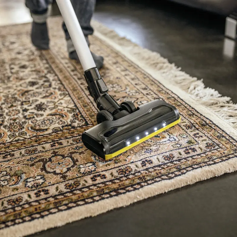 Бесщеточный двигатель постоянного тока мощностью 250 Вт обеспечивает легкое выполнение любых уборочных работ. Моторизованная насадка для пола со светодиодной подсветкой одинаково эффективно очищает как твердые напольные покрытия, так и ковры.