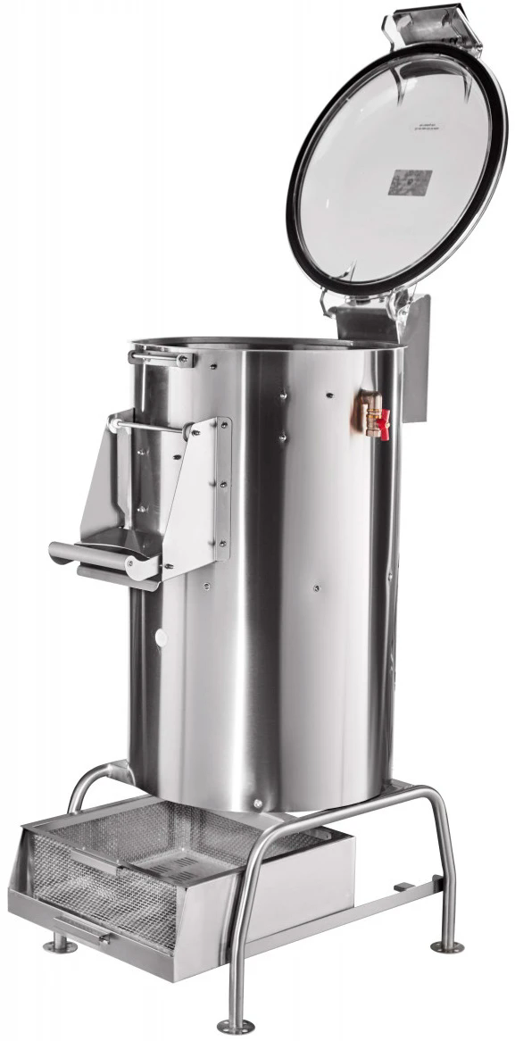 Благодаря стеклянной крышке процесс очистки всегда находится под контролем и степень очистки корнеплодов можно легко определить визуально.