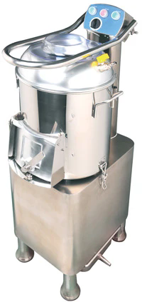 Разгрузочный люк откидывается вверх и обеспечивает полную герметичность в процессе очистки овощей, надежный запор легко открывается для выгрузки овощей.