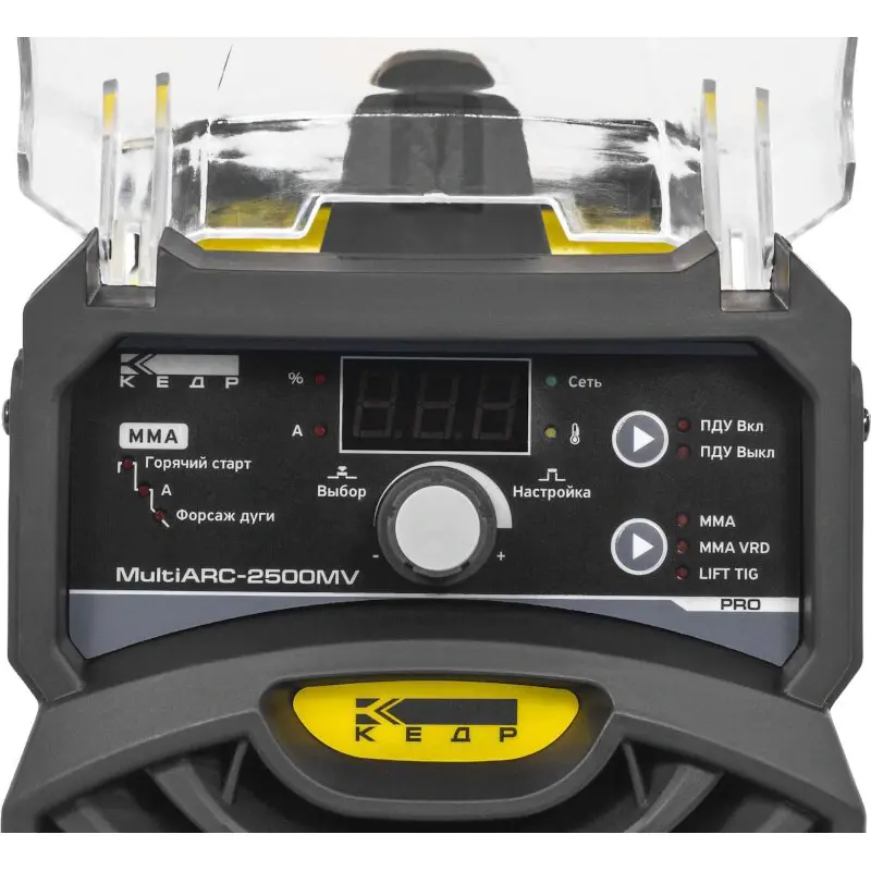 В устройстве предусмотрена возможность подключения пульта для дистанционного управления. Панель управления закрыта прозрачным пластиковым экраном для защиты от пыли и случайных ударов. Благодаря небольшому компактному корпусу с верхней ручкой сварочный аппарат КЕДР MultiARC 2500MV удобно переносить между рабочими объектами.