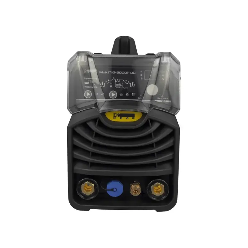 Панель управления закрыта прозрачным пластиковым экраном для защиты от пыли и случайных ударов. В случае отключения питания параметры последней сварки автоматически сохраняются в памяти и восстанавливаются при следующем включении. К устройству можно подключить педаль и пульт дистанционного управления. Благодаря небольшому компактному корпусу сварочный аппарат КЕДР MultiTIG 2000P DC удобно переносить между рабочими объектами за верхнюю ручку.
