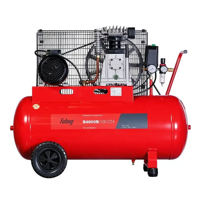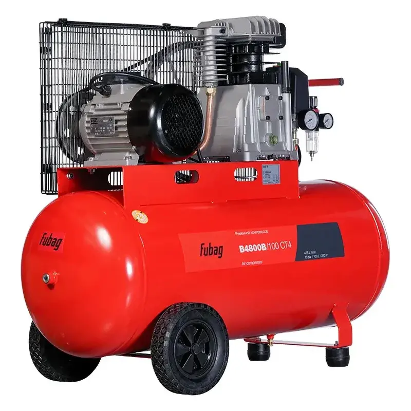 Компрессор Fubag B4800B/100 CT4 работает от трехфазной электросети с напряжением 380 В. Модель с производительностью 480 л/мин и рабочим давлением 10 бар подходит для интенсивной эксплуатации в автосервисах, шиномонтажах, на небольших производствах, оснащенных мощными пневмоинструментами.