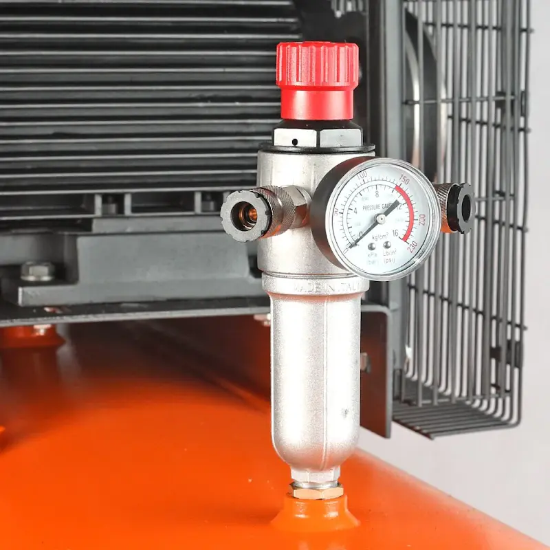 Трехцилиндровый компрессор с ременной передачей и увеличенной производительностью. Применяется для сервисных, ремонтных работ в гараже, на шиномонтаже и автосервисе.