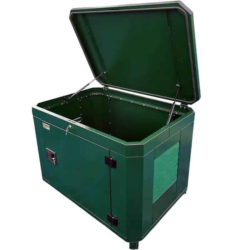 Шумопоглощающий теплоизолирующий утеплитель - боковые стенки и верхняя крышка кожуха покрыты вспененным каучуком Он поглощает шум и не впитывает влагу. Утепленное двойное металлическое дно оснащено ножками, для поднятия от уровня установочной площадки, которые оберегают кожух от коррозии. Для ввода кабелей в днище контейнера предусмотрено два кабельных ввода.