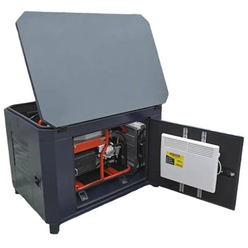 Защищенный электрический подогреватель, позволяющий эксплуатировать генератор круглогодично. Для гарантированного запуска генератора в холодное время года на внутренней стенке кожуха устанавливается автоматический электроподогреватель воздуха мощностью 500 Вт. Он позволяет поддерживать постоянную плюсовую температуру внутри укрытия для генератора. Для установки в замкнутом пространстве с возможным наличием паров топлива применяются только сертифицированные нагреватели с закрытыми теплоэлементами. Нагреватель снабжён регулируемым термостатом и обеспечивает автоматическое поддержание температуры выше точки замерзания, включаясь только при понижении температуры. Питание подогревателя обеспечивается от внешней электросети.