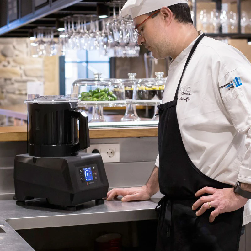 чаша объемом 4,4 л оснащена боковой мешалкой и высоким валом для увеличения производительности.
