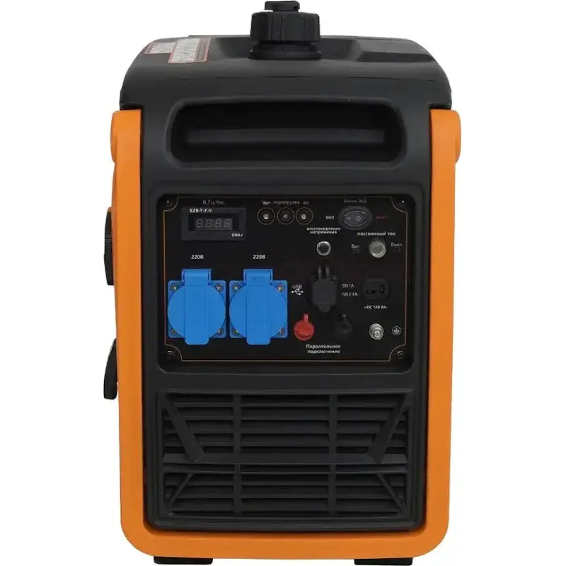 Этот генератор обладает инверторным типом работы, что обеспечивает низкий уровень шума и вибрации, стабильное напряжение, высокую энергоэффективность и бесперебойное электроснабжение. Он оснащен панелью управления, которая позволяет контролировать все параметры работы генератора и противоударным корпусом, который защищает от механических повреждений.
