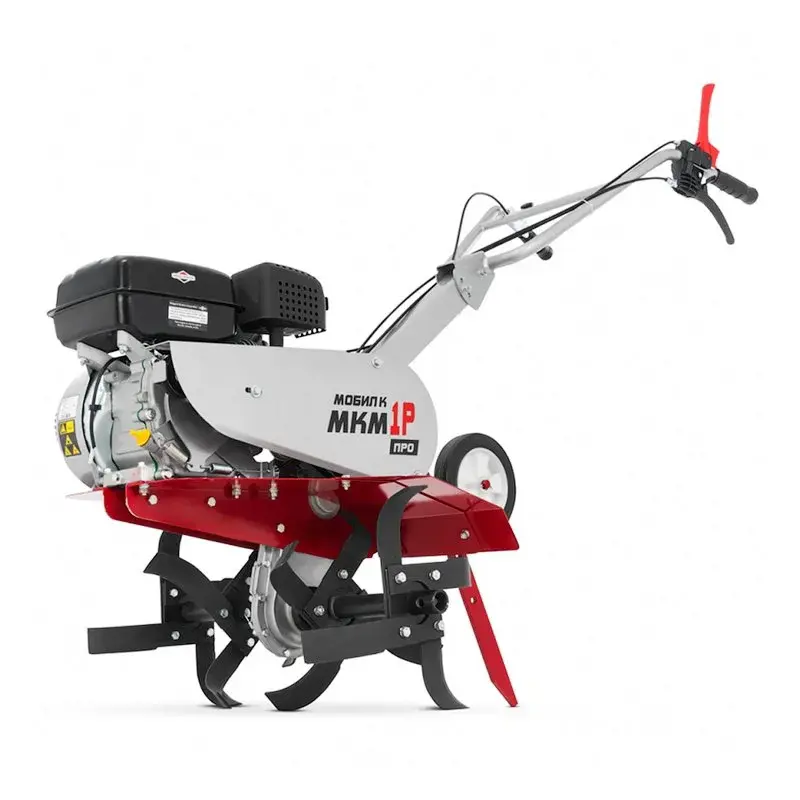 Мотокультиватор Мобил К МКМ-1Р ПРО при наличии навесного оборудования способен выполнять до 7 различны задач: от вспашки целины до окучивания картофеля. Агрегат оборудован 4-тактным двигателем МОБИЛ К ПРО G200FA мощностью 6,5 л.с. и подходит для работы на участках