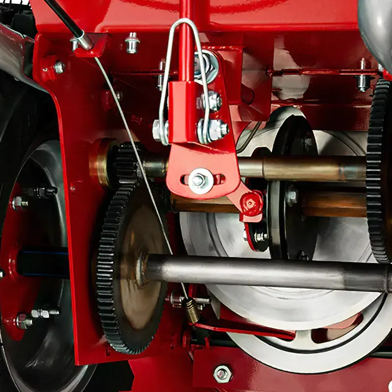 Вам не придется прикладывать физические усилия для перемещения снегоуборщика по участку. Модель оснащена шестереночной трансмиссией с 5 скоростями вперед и 2 назад. Максимальная скорость движения агрегата составляет 0,63 км/ч.