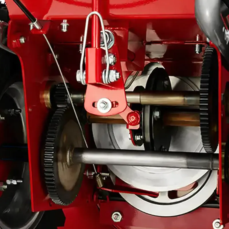 Шестеренчатая трансмиссия обеспечивает широкий выбор скоростей движения — пять передних передач и две задние. На пониженной передаче удобно выполнять уборку мокрого снега или расчищать территорию с неровной поверхностью. Колесные протекторы с глубоким рельефом обеспечивают отличное сцепление с дорогой при любой погоде, даже в гололедицу.