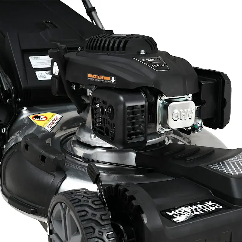 В газонокосильной машине установлен фирменный мотор V200 с вертикальным коленвалом и верхним расположением клапанов (OHV). Благодаря этому двигатель имеет высокий КПД, тихо работает и отличается долговечностью. Для защиты цилиндро-поршневой группы предусмотрен профессиональный воздушный фильтр из бумаги.