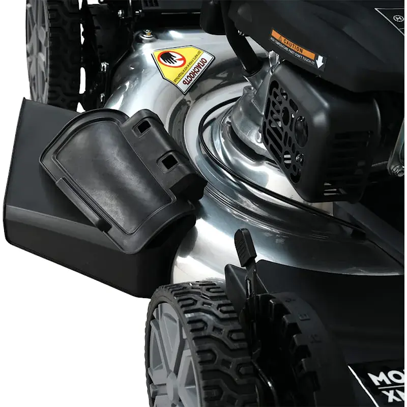 Газонокосилка позволяет мульчировать траву, использовать боковой выброс или отправлять срезанную растительность в травосборник. В комплект поставки уже входит все необходимое, чтобы использовать любой из этих режимов.
