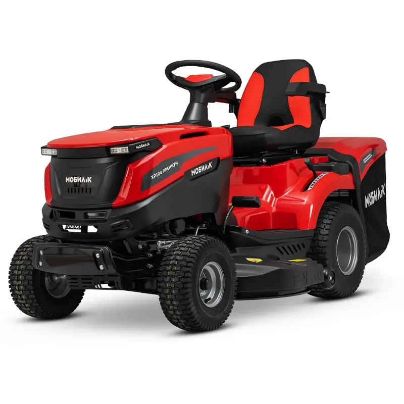 Садовый трактор МОБИЛ К XP104 ПРЕМИУМ — это современная самоходная машина, объединяющая в себе возможности газонокосилки и мини-трактора. Он оснащён мощной косильной декой шириной 104 см, что делает его эффективным для участков площадью от 30 до 100 соток (0,3–1 га), а также для территорий свыше 1 гектара.