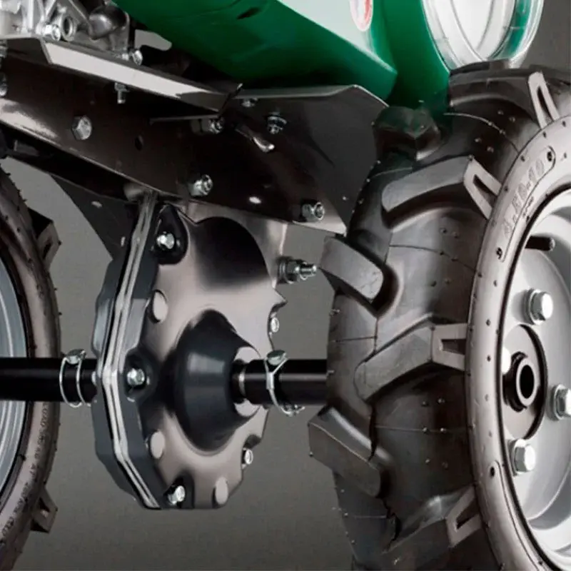 Позволяет использовать газонокосилку, роторную косилку, снегоотбрасыватель, щетку (опции). Благодаря этому Вы можете работать с мотоблоком круглый год!