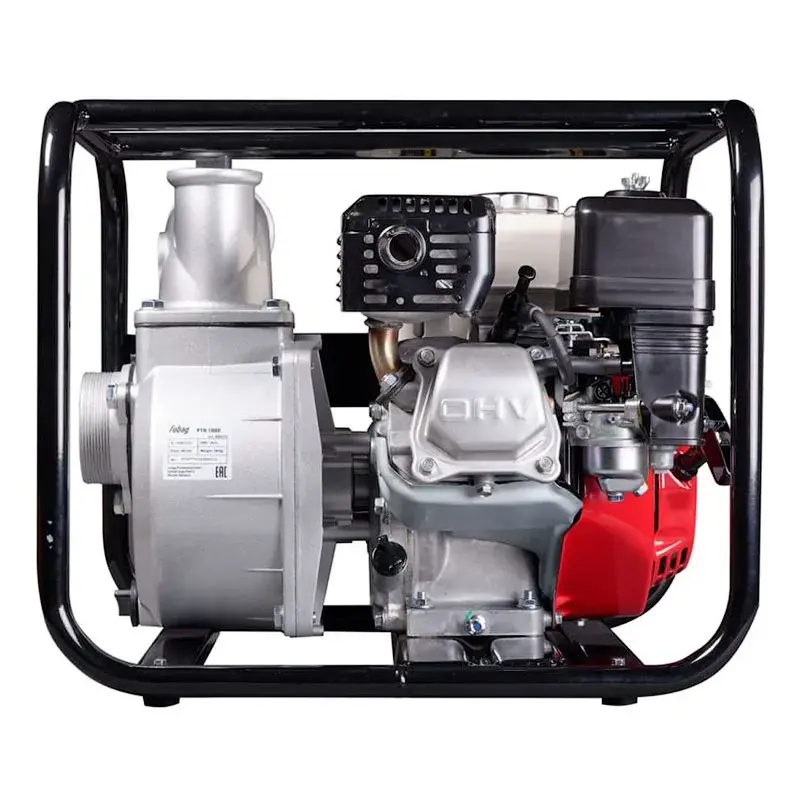 Запуск мотопомпы Fubag PTH 1000 осуществляется с помощью ручного стартера. В качестве топлива используется бензин АИ-92. Рамная конструкция обеспечивает устойчивость насоса даже на неровной поверхности, защищает внутренние элементы от повреждений при перевозке, удобна для транспортировки.