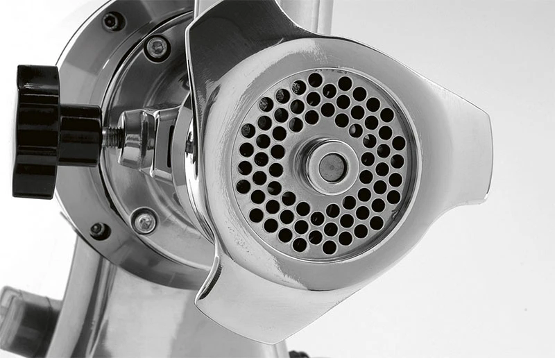 Мясорубка данной модели характеризуется высокой прочностью комплектующих и отличным внешним видом. Загрузочное устройство мясорубки соответствует всем требованиям безопасности. Антикоррозийная облицовка из нержавеющей стали защищает от появления ржавчины на поверхностях мясорубки. Оптимальная конструкция мясорубки делает возможным ее использование в небольших помещениях, где площадь рабочего места ограничена.