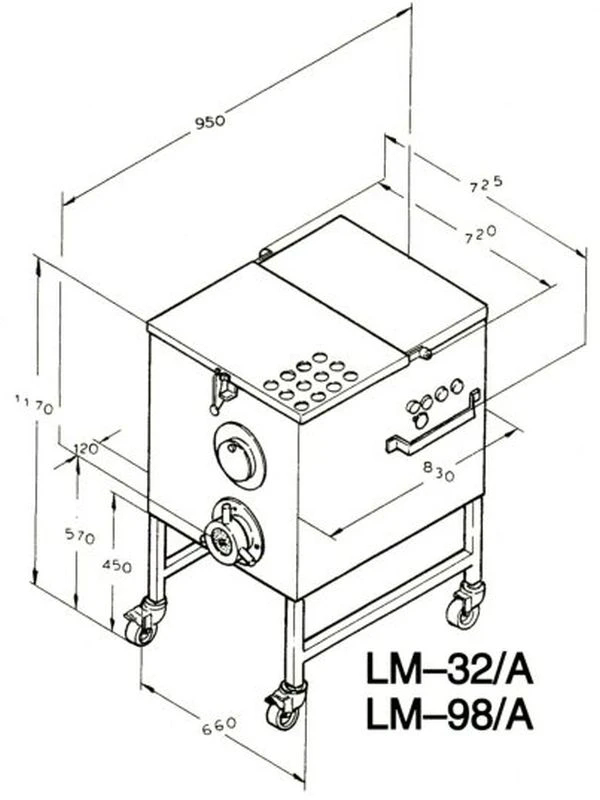 Автоматический волчок Koneteollisuus LM-98/A с системой ножей Unger (чугунный корпус, шнек из алюминия) предназначен для для измельчения мяса и получения фарша, купат и колбасок.
