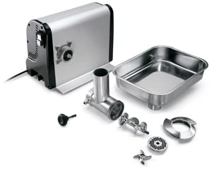 Мясорубка Sirman TC-12 Denver с системой ножей Enterprise предназначена для измельчения мяса и рыбы на фарш, повторного измельчения котлетной массы и набивки колбас на предприятиях общественного питания. Надежный алюминиевый корпус обеспечивает механическую прочность модели. В конструкции предусмотрен эргономичный ящик для хранения насадок и ножей.