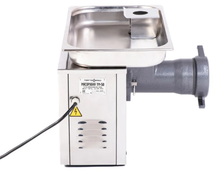 Данная модель сохранила все преимущества мясорубок ТМ-12 и ТМ-32. Привод шнека мясорубки осуществляется моторредуктором, что позволило максимально уменьшить габариты мясорубки без потери производительности по выходу готового продукта, а также снизить шумность при работе.