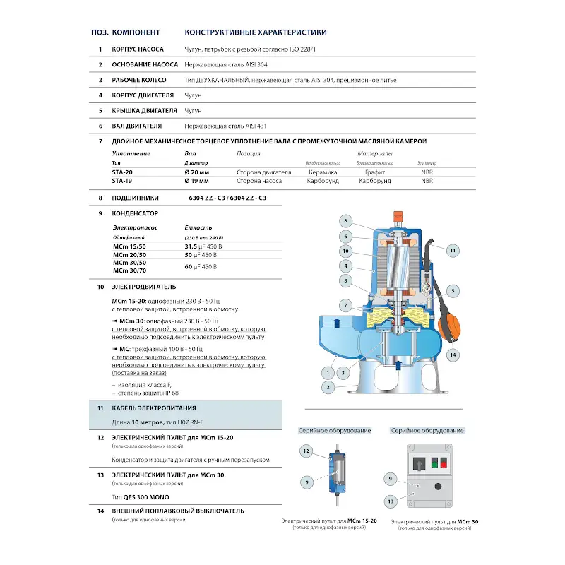 Электронасосы серии MC изготовлены из чугуна значительной толщины и высокой прочности, износостойкого и долговечного. Они оснащены одноканальным рабочим колесом, которое обеспечивает подъем жидкостей с присутствием во взвеси коротковолокнистых твердых частиц.