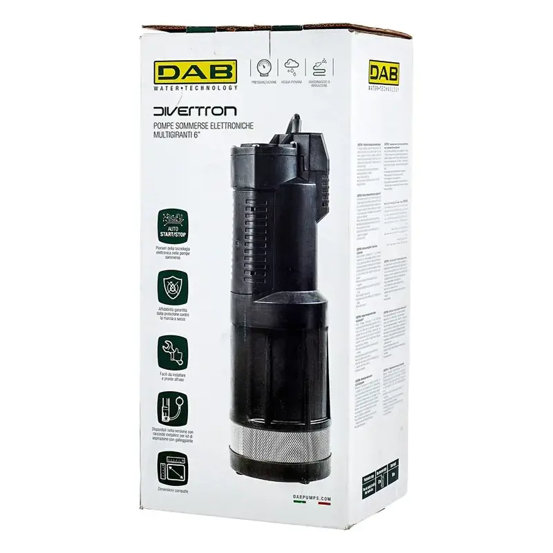 Насос колодезный DAB Divertron 1000 M погружного типа предназначен для перекачивания чистой воды и установки на глубину до 12 м. Аппарат подходит для использования в частных домах или небольших фермерских хозяйствах.