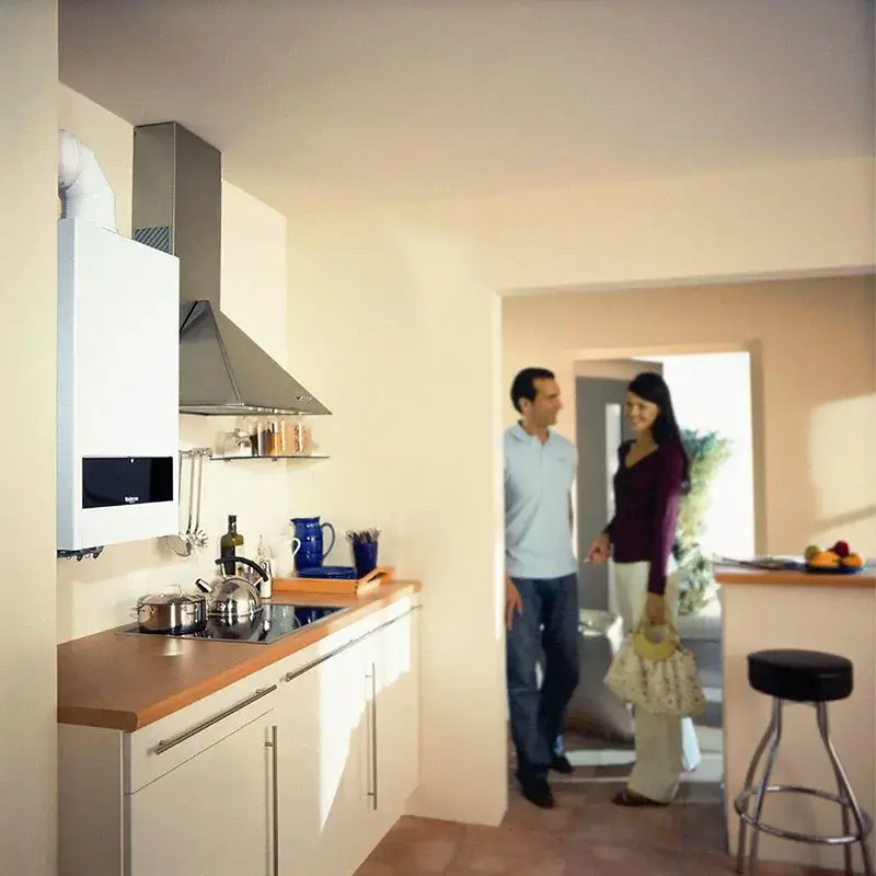 Газовый настенный котел Buderus Logamax U054-24 - экономичный агрегат для индивидуального отопления. Имеет простую конструкцию, которая обеспечивает быстрый и удобный доступ к составным компонентам. Данный агрегат оснащен открытой камерой сгорания. Благодаря этому котел можно разместить в жилой зоне. За счет внешней панели управления обеспечивается удобство выбора оптимального режима работы котла. Гарантия на котел составляет 24 месяца. Битермический теплообменник изготовлен из меди. Котел прост при установке за счет безопасной конструкции узлов. Предусмотрена возможность использования антифриза. Котел имеет высокий КПД (90-92 %).
