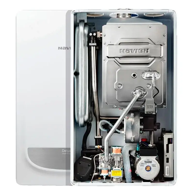 Котел газовый Navien Deluxe S-20K мощностью 20 кВт подходит для нагрева воды в ГВС и отопления помещения площадью до 200 м2. Регулировка температуры происходит с помощью пульта управления, который поставляется в комплекте.