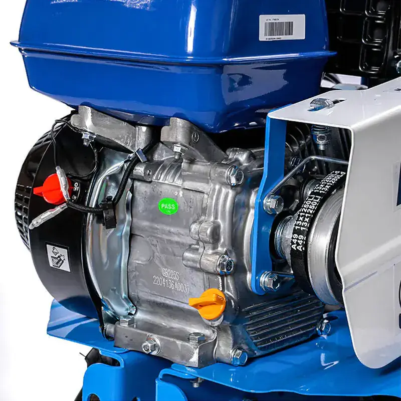 На выбор есть большое количество скоростей передвижения. Это поможет задать комфортный темп работы и рыхлить разные типы почвы. За счет перестановки ремня на двухручьевых шкивах вам будет доступно 6 скоростей вперед, а также 2 назад. Задний ход облегчает разворачивание оборудования на одном месте.