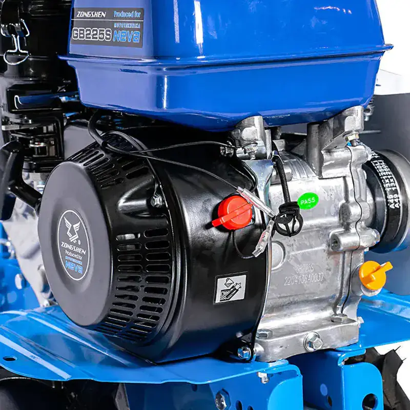 Бензиновый двигатель Zongshen GB225 выполнен с верхним расположением клапанов (OHV), что обеспечивает высокий КПД и длительный срок службы. Для долговечности гильзы цилиндра изготовлены из чугуна. Моторесурс двигателя составляет 1000 часов.