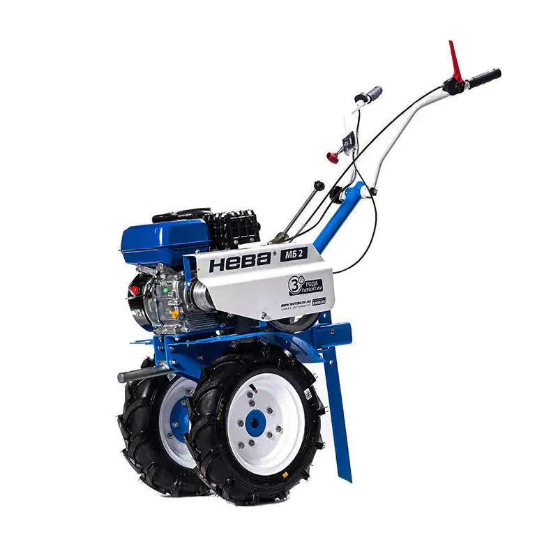Мотоблок Нева МБ2-ZS GB225 весит 91 кг и обеспечивает максимальную глубину вспашки 20 см. В качестве навесного оборудования в комплекте поставляется набор фрез. Для простого перемещения по участку предусмотрены большие пневматические колеса тракторного типа.
