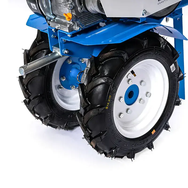 В качестве трансмиссии в бензиновом мотоблоке выступает шестеренчато-цепной редуктор, который оснащен алюминиевым корпусом. Редуктор обеспечивает большую силу тяги до 300 кгс. За счет этого мотоблок подходит для перевозки тяжелых грузов и обработки любых типов почв.