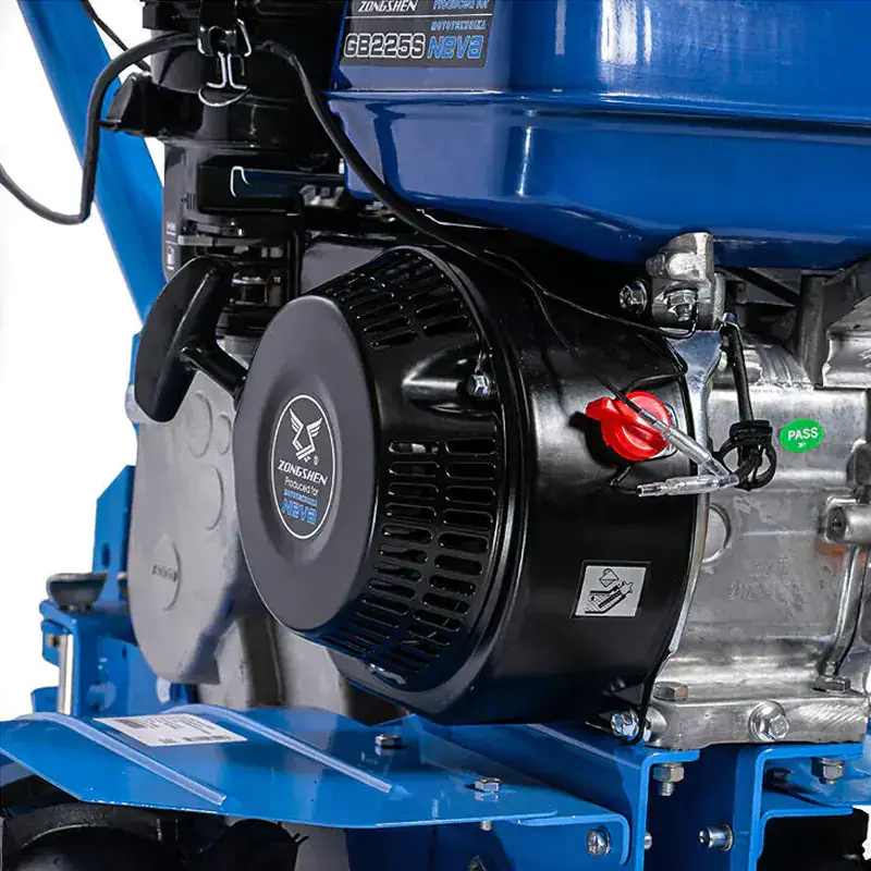Мотоблок Нева МБ2-ZS GB225 оснащен 4-тактным бензомотором Zongshen GB225 с верхним расположением клапанов (OHV). Такая конструкция обеспечивает долговечность и тихую работу. Мощность двигателя составляет 7,5 л.с., что позволяет выполнять даже сложные задачи, например вспахивать целину. Гильзы цилиндра изготовлены из чугуна. Это повышает надежность двигателя, обеспечивая максимальный срок его службы. Моторесурс составляет 1000 часов.