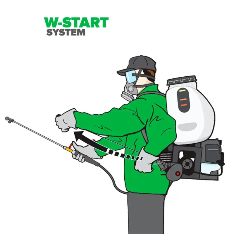 Оператор может запустить двигатель, не снимая опрыскиватель со спины, чтобы сэкономить время и силы.