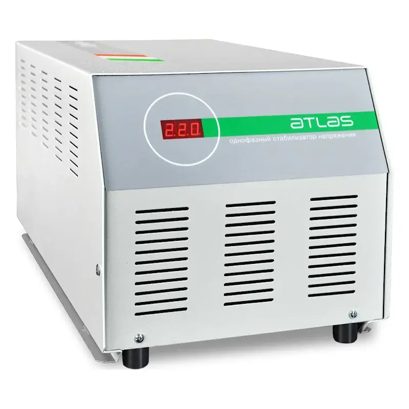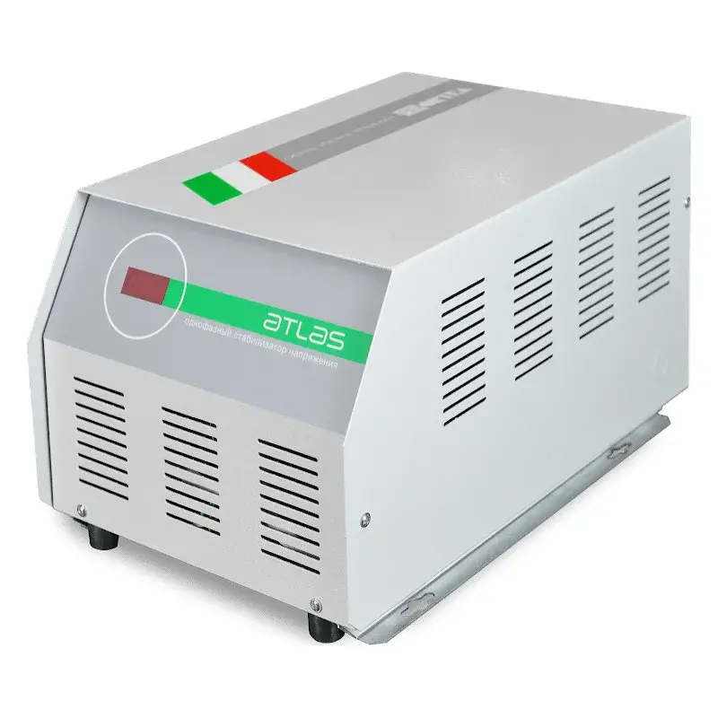 Стабилизатор напряжения ORTEA Atlas 5 плавно выравнивает показания однофазной электросети в диапазоне от 176 до 242 В. Модель изготовлена в Италии и обладает длительным гарантийным сроком обслуживания.